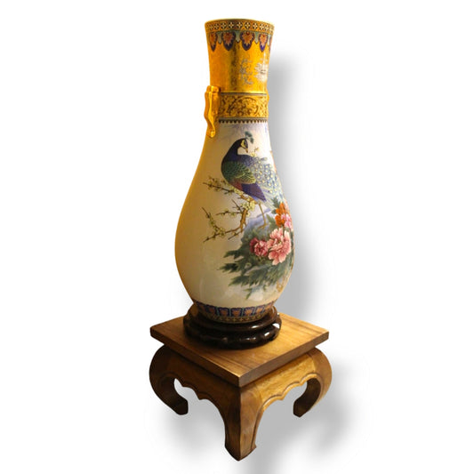 Chinoiserie Peacocks and Floral-Adorned Vase
