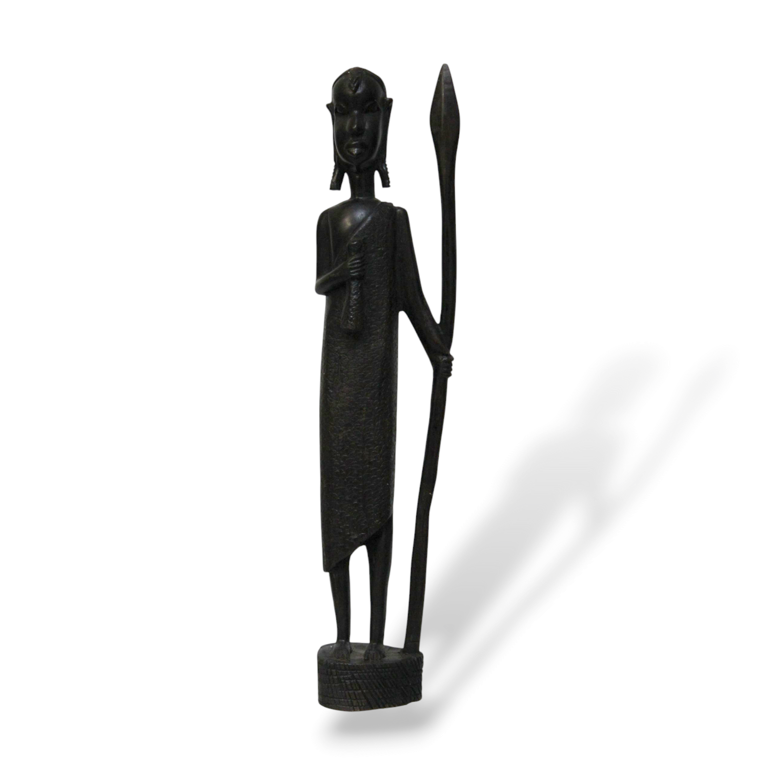 African Warrior Statue - An African warrior sculpture hand-carved from either ebony or iron wood representing pride & embodying strength. One available.