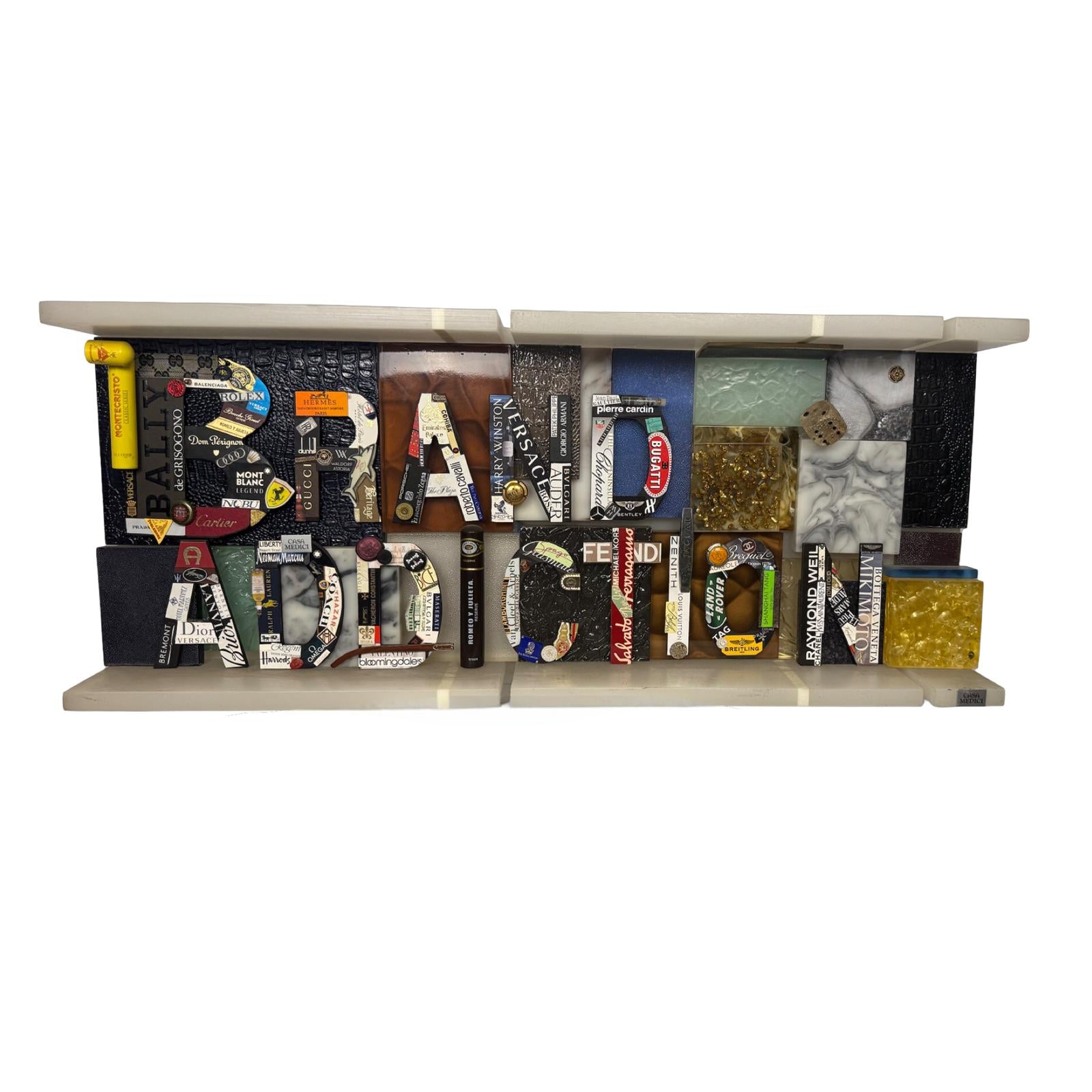 "Brand Addiction" is a 3D resin testament to the consumer-oriented society we live in and our almost universal addiction to branded merchandise in every facet of our lives. Original artwork by Tal McAbian and Luis Antolin, One of a kind.