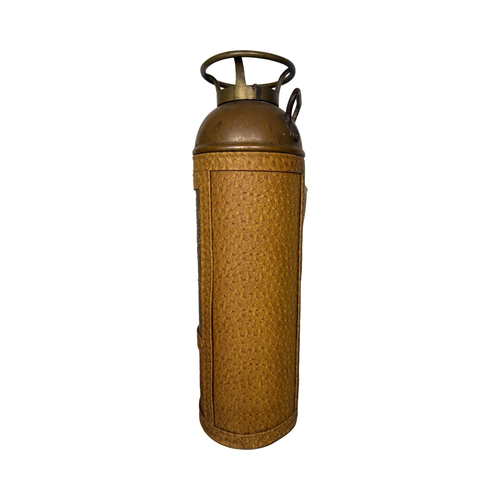 Ostrich Decorated Antique Fire Extinguisher- A vintage fire extinguisher clad with an ostrich vinyl as a unique one of a kind decor piece.