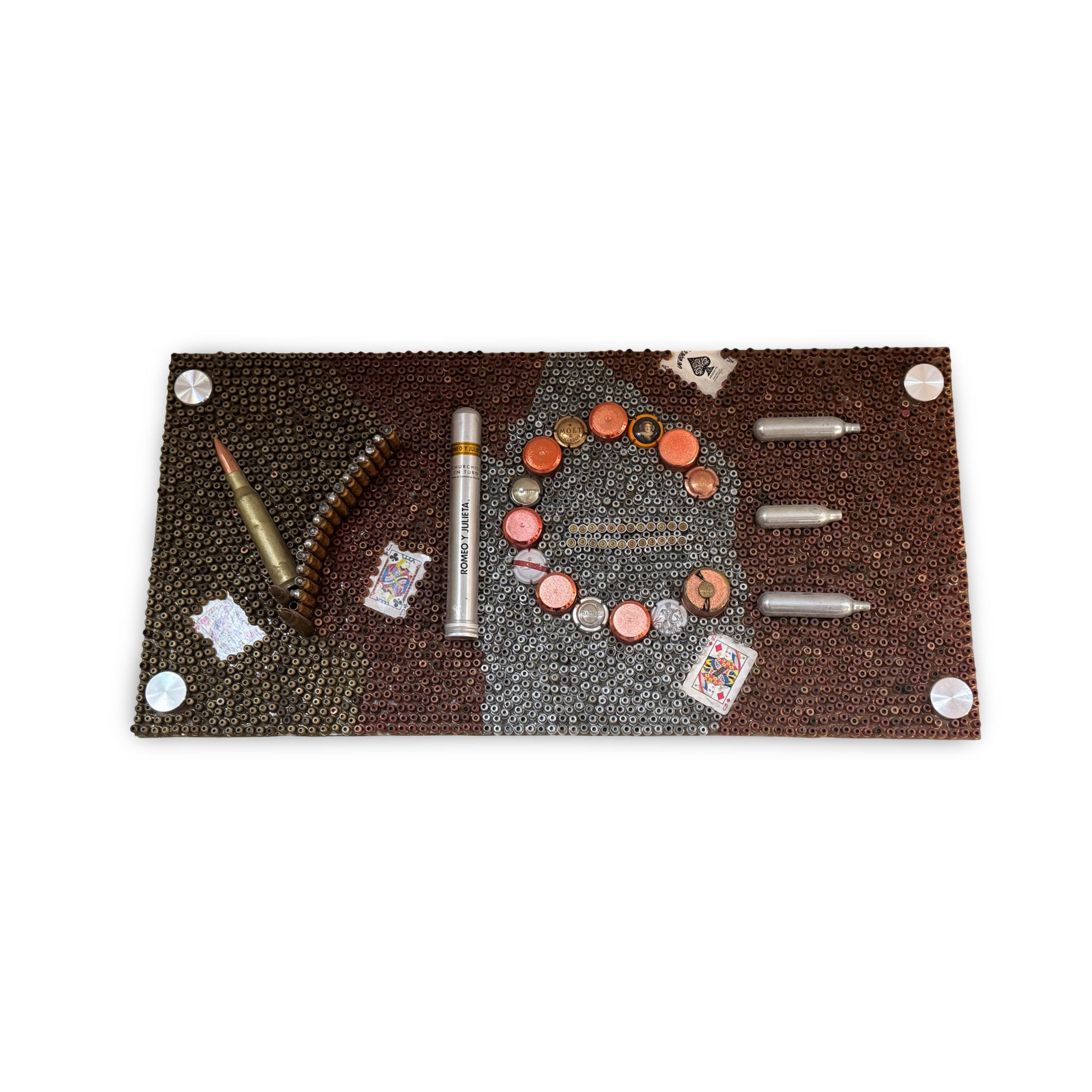“Vice”- A three dimensional collage of some which is “Vice” in our lives. One of a kind piece of art by Tal McAbian. $1,600.00.